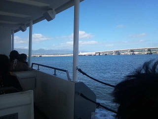 ほとんど日本人はいません、ボートに乗って5分ほどでアリゾナメモリアルに到着です。