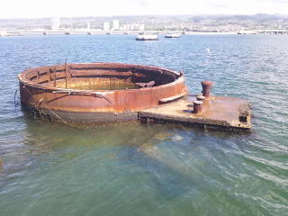 日本の真珠湾攻撃によって撃沈した戦艦アリゾナです。
