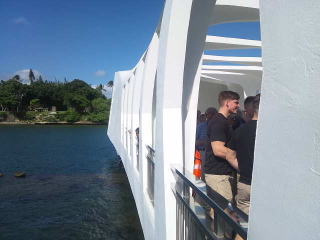 そしてパールハーバーメモリアルシアターで映画で研修した後、グループは出発です。