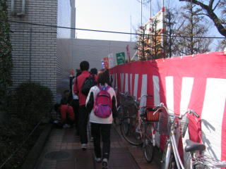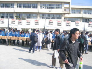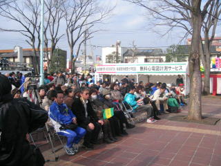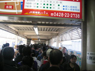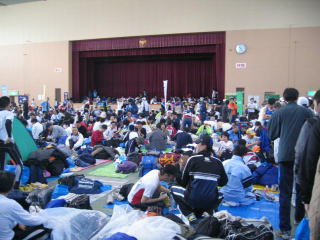 11時には体育館を出て市民病院裏の仮説トイレ3基に25分並びました。