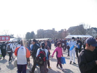 が、号砲は全く聞こえません、アナウンサーが「今号砲がなりスタートです」、と言っているので、皆がゾロゾロ動き出しました。
