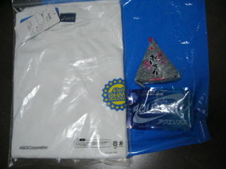 参加賞Tシャツ、ゴール後にいただいたおにぎりとアクエリアスです。