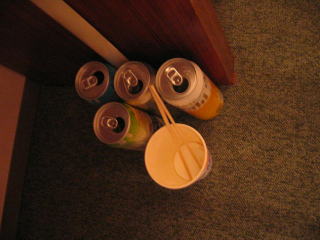 朝は8時30分に起き、電子レンジで朝ごはん、カップヌードルもいただきました。