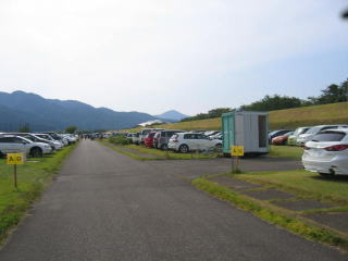 遅くの到着でしたが、河川敷駐車場は広く、車は楽に止められました。
