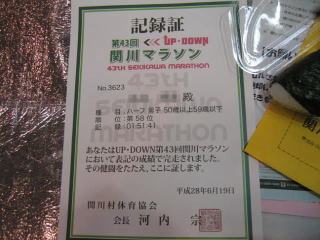 平成28年6月19日 「第43回関川マラソン」のハーフに参加しました。