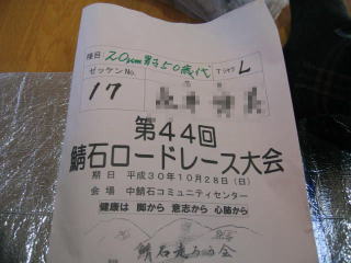 平成30年10月28日 柏崎市の「第44回鯖石ロードレース大会」の20キロに参加しました。