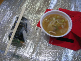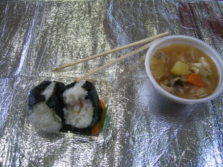 おにぎりや豚汁をいただき、雑談しながら表彰式を待ちます。