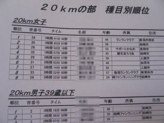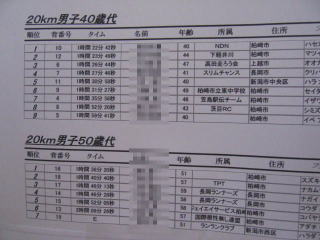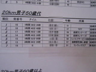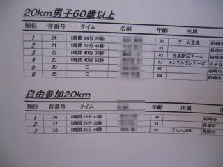 20キロ男子60歳以上では諏訪部さんが4位です、参加者は少ないのですが、4人とも部門3位の姫ちゅより5分以上早い記録です。