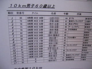 男子10キロ60歳以上、イタグレさんが4位入賞です、おめでとうございます。