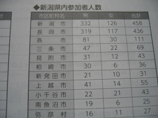 はやり新潟市の参加者が一番多いようです、続いて地元長岡市。