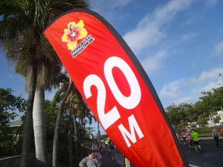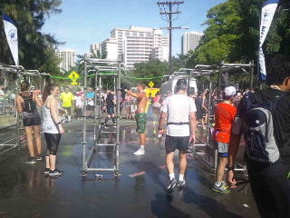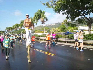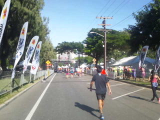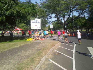 カラカウア大通りを左折して「新イベントのホノルル10キロラン&ウォーク」のフィニッシュ地点。