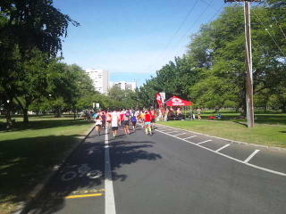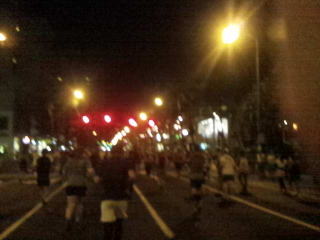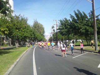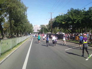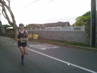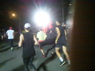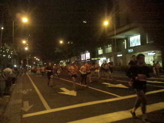 道幅一杯にランナーが走っているのに青い閃光を灯し、警笛を鳴らした白バイがランナーをかき分けやってきました。