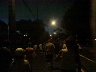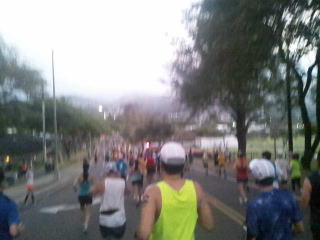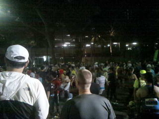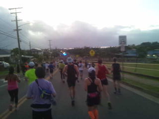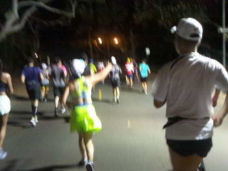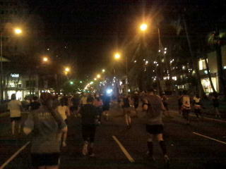 午前3時15分ホテルを出発、歩いてホノルル動物園近くのオフィシャルバス乗り場へ向かって歩きます。
