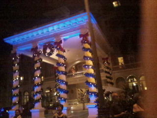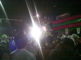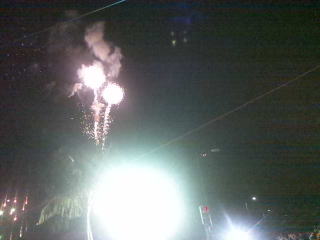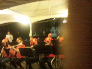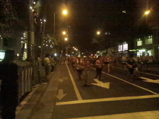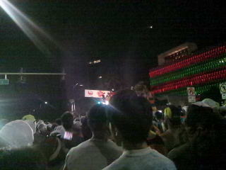 早朝?まだ夜ですが楽器の演奏で応援してくれています。
