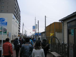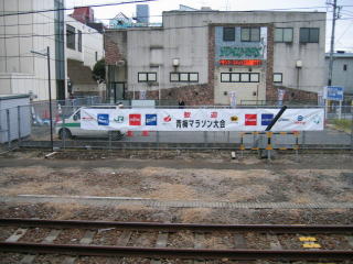 河辺駅のホームはランナーで満杯、なかなか進みません。