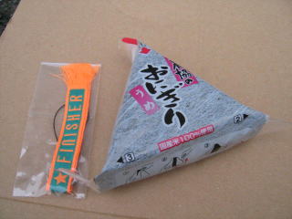 ゴールすると、完走ストラップ、おにぎり、スポーツドリンクがもらえます。