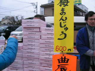 6キロ位で最初の給水、太鼓や梅の着ぐるみ、たくさんの応援が続きます。