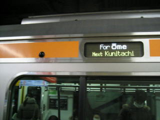 大宮で降りて、埼京線、武蔵野線、中央線、青梅線と乗り継ぎます。