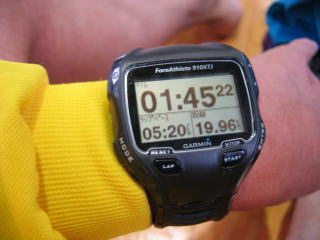 自己計測では1時間45分22秒、距離はほぼ20キロです。