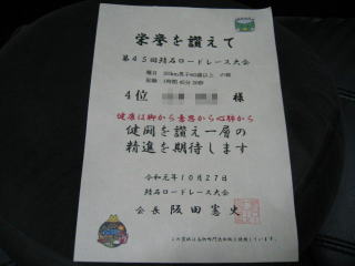 今年から入賞すると賞状と完走証は兼ねていて、1枚の交付になった様です。