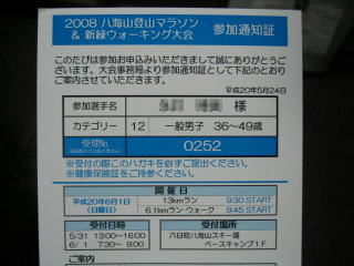平成20年6月1日、南魚沼市の「第4回八海山登山マラソン&新緑ウォーキング大会」のラン(13キロ)に参加しました。