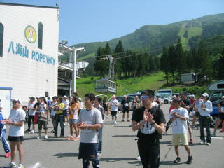 今回初参加、受付の人にスタート場所を聞くと、この上のロープウェー発着所との事です。