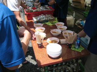 おにぎり&とん汁引換券を使います。