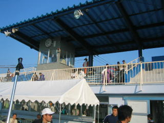 どこに陣取ろうかウロウロ、屋根つきのメインスタンドにあがりたかったのですが良く分かりませんでした。