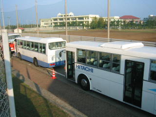 10キロはスタート場所が違うので輸送バスが来ています。