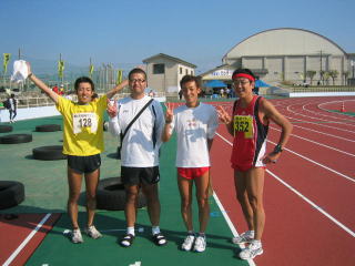 左端のぬまっちさんはフル3時間30分位、左2番目の米蔵さんは目標達成のハーフ2時間切り。