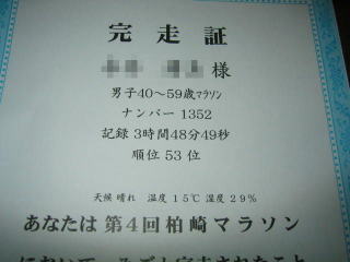 平成18年11月 柏崎市の「第4回柏崎マラソン」のフルマラソンに参加しました。