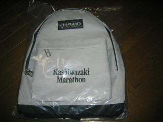 参加賞のリュックは大人が使うにはちょっと小さい。