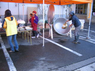 大きな鍋でとん汁を作るようです。