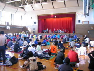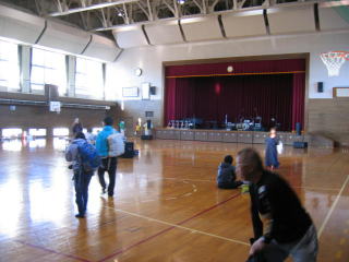 ナンバーカードを付けてのんびりします、体育館もだいぶ混んできました。