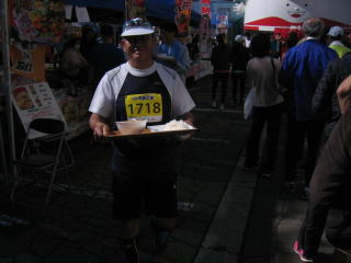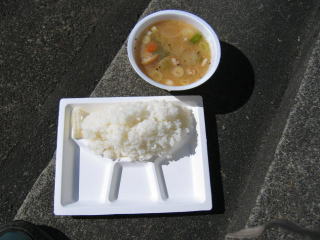 ゴールして、トン汁と山盛りご飯(お新香2切れ付き)をもらいました。