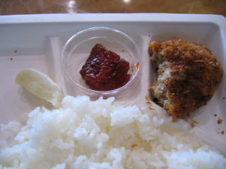 おかず購入で並んでいる間にちょっとご飯をいただきました。