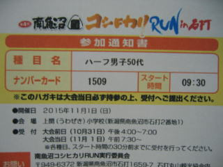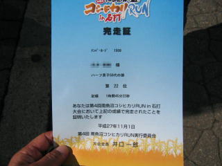 平成27年11月1日 南魚沼市の「第4回南魚沼コシヒカリRUNin石打」のハーフマラソンに参加しました。