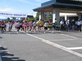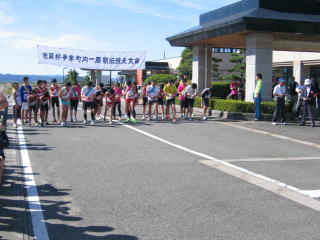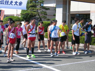 スタート前、1区の選手の点呼を取り、スタートラインに整列です。