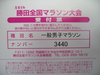 平成20年1月 茨城県ひたちなか市の「第56回勝田全国マラソン大会」のフルマラソに参加しました。