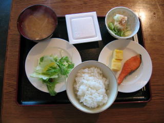 翌朝は7時30分に起きて、フロント脇のレストランで朝食、和食のバイキングです。