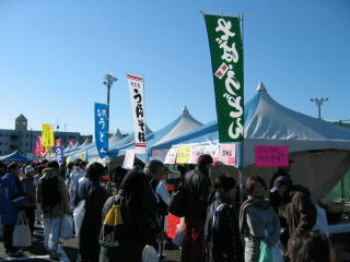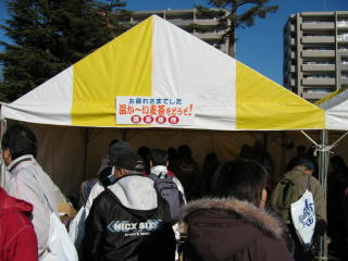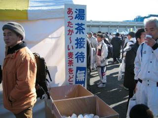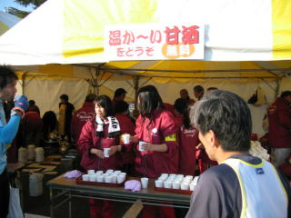 道路を挟んだ向こう側は、お店やトイレ、麦茶、甘酒などのサービスがある区画です。