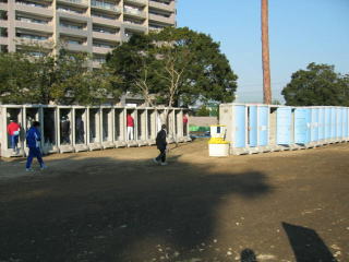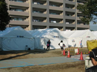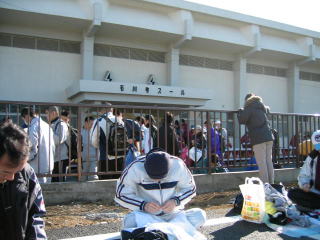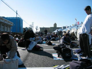 体育館などの控え室がないので、皆さんアスファルト上にレジャーシートなどを敷いて座っています。