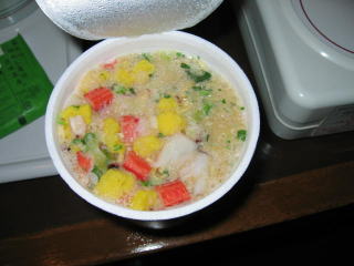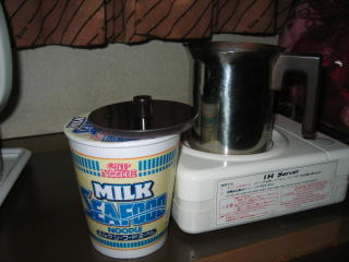 熱湯を沸かし、やっぱり〆はラーメン、カップめん持参しました。