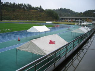 折り返し付近で収容されたのは姫ちゅ一人のみ、3号車の男子貸切収容バスに乗って10分ほどで陸上競技場に戻りました。