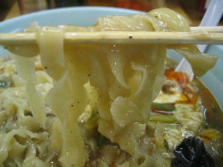 「刀削麺」は「刀で削り出し」なのか、平たく縁が薄いビラビラの、まさしく削り出した様な麺です。