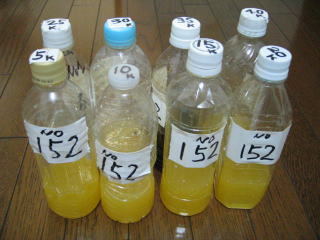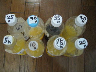 25キロはアクエリアスのみ150cc、35キロはコーラのみ150ccです、合計8本です。