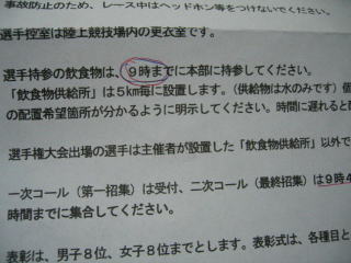 「選手持参の飲食物」、簡単に言うとスペシャルドリンクは午前9時までに本部に持参すること。