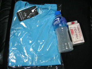参加主はデサントの肌触りの良いTシャツ、アクエリアス、かつおだし、日帰り入浴割引券です。