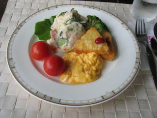 パンも付いています、トイレも済ませ、朝7時20分過ぎに宿を出発です。