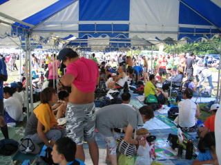 テントの下には控室?がありますが、参加者の1割も入れないようです。